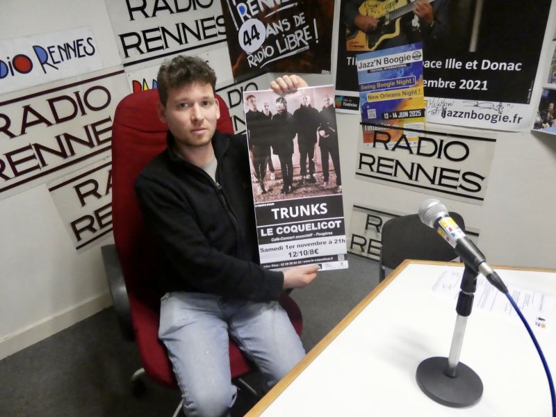 Benoit Piel, programmateur du Café-concert Le Coquelicot à Fougères, nous présente la programmation du mois de novembre : le groupe Trunks (avec Daniel Paboeuf et Laetitia Sheriff), le groupe ! Azar Azar !, la Costa Rica Beach Party et le groupe Wonderboy.