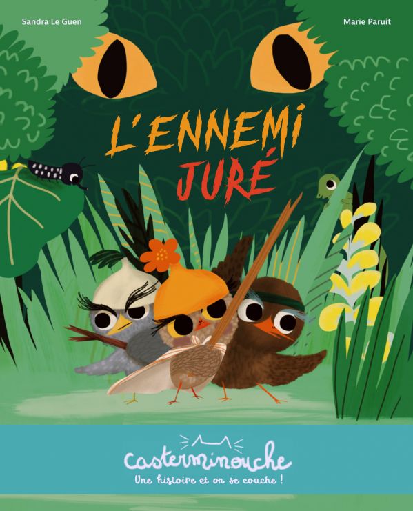 Littérature jeunesse. Dans la chronique 'Nouveautés' aux Éditions Casterman, "L'ennemi juré" de Sandra Le Guen et Marie Paruit, un album de la collection 'Casterminouche – Une histoire et on se couche !". L'aventure, c'est du sérieux ! Trois petits hérons, Mabelle, Mox et Mouche, partent à l'aventure. Ils vont affronter leur ennemi juré, et ça ne va pas rigoler… Un livre sur les pouvoirs de l'imagination et sur le courage qu'il faut, quand on est un petit, pour partir affronter son ennemi... même si l'on ne sait pas vraiment qui il est !
