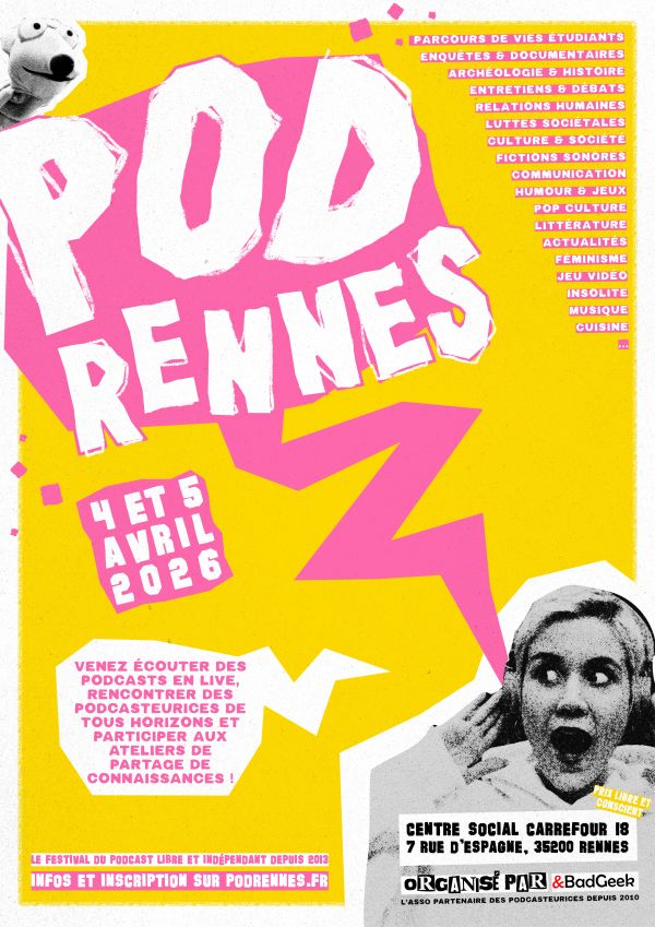 Créé en 2013, PodRennes est un festival rennais consacré au podcast et à la création sonore. Il propose des enregistrements de podcasts en public, des ateliers, des rencontres et met aussi en avant la fiction sonore, dans une démarche ouverte et accessible.