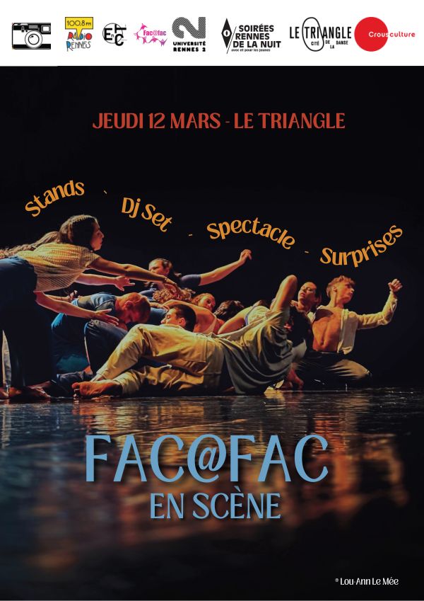 L'association étudiante En Toute Complicité vous invite à la 25ème édition du festival Fac à Fac, rendez-vous incontournable de la danse universitaire en France, qui se déroulera dans la ville de Rennes et au Triangle du 11 au 14 mars 2026.